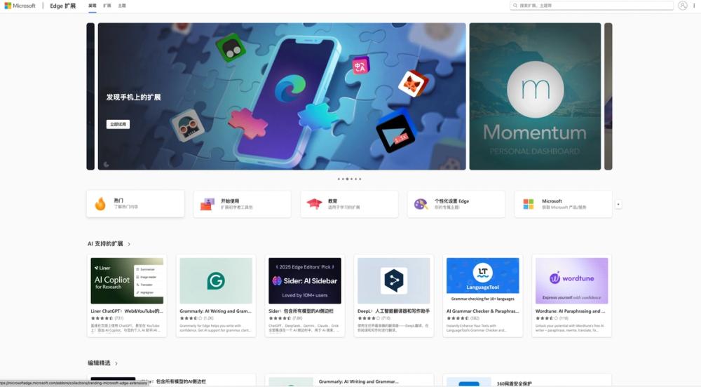 通过扩展程序个性化Microsoft Edge浏览器,提升生产力。